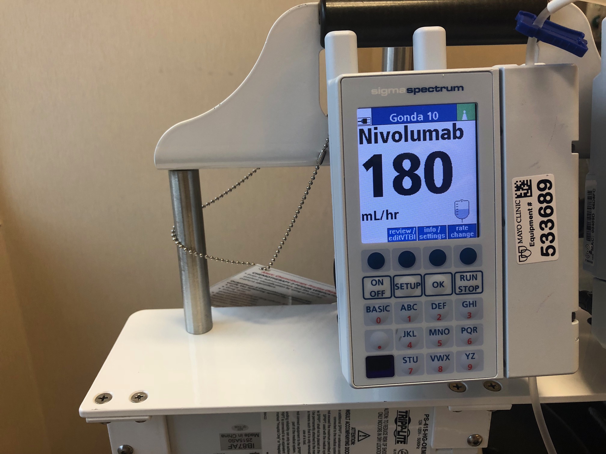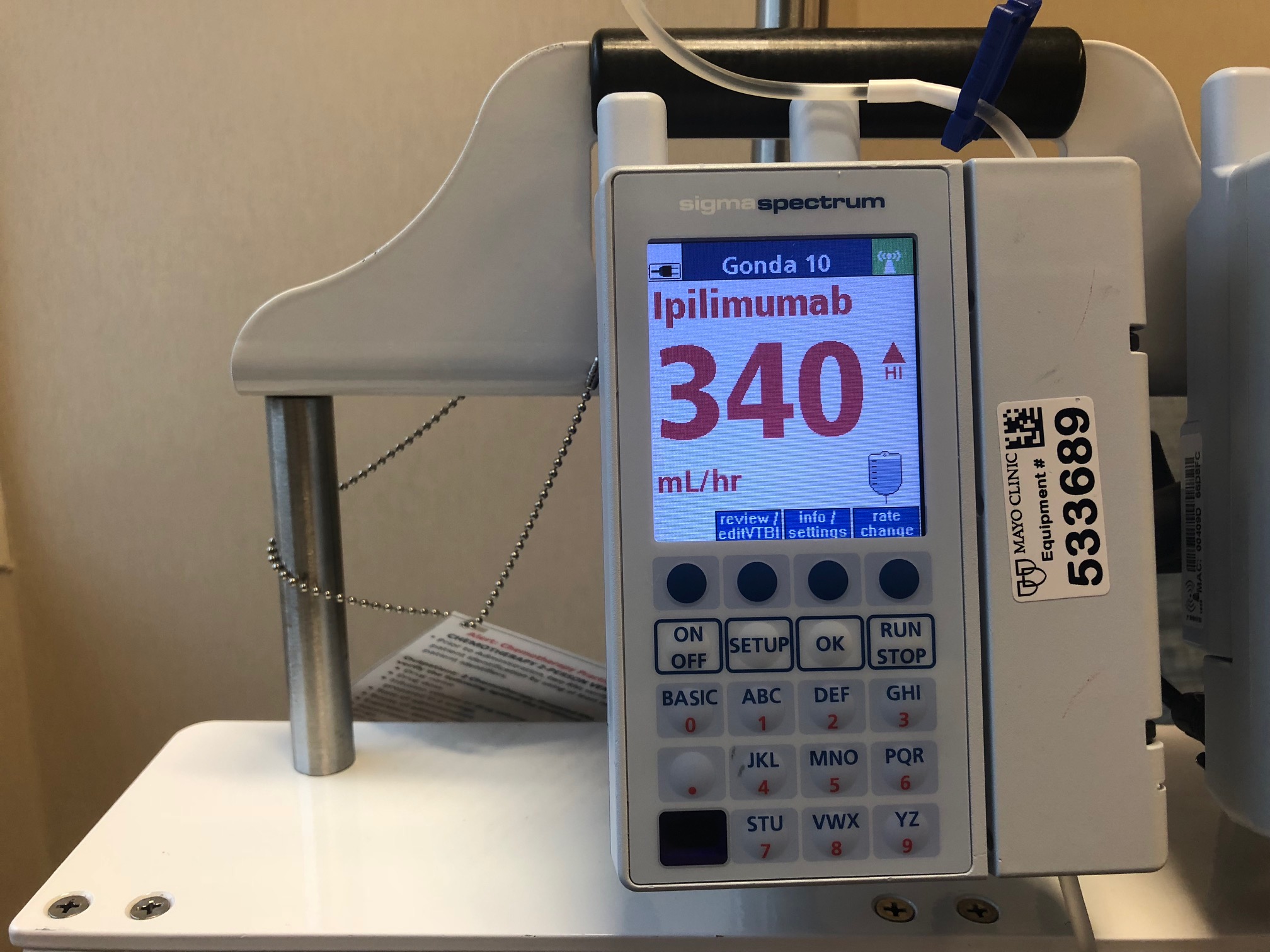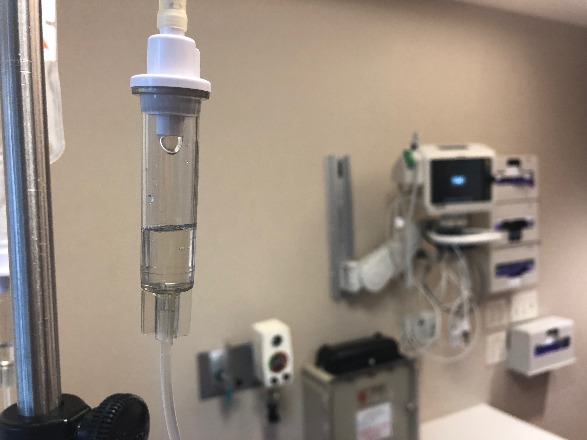 The nurse prepared Seth for the infusion. Bag one. Bag two.